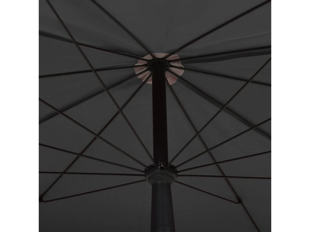 Stříška slunečníku je vyrobená z polyesteru, který nebledne a nepropouští škodlivé UV záření, takže vám poskytne optimální ochranu před sluncem. Navíc se snadno se čistí. Pevná ocelová tyč s 10 odolnými žebry přispívá k výtečné stabilitě produktu a prodlužuje jeho životnost. Exkluzivní design zahradního slunečníku vám umožní sklopit jeho stříšku a chránit se před sluncem po celý den. Slunečník je vybavený klikovým mechanismem, jehož prostřednictvím ho lze snadno otvírat i zavírat.