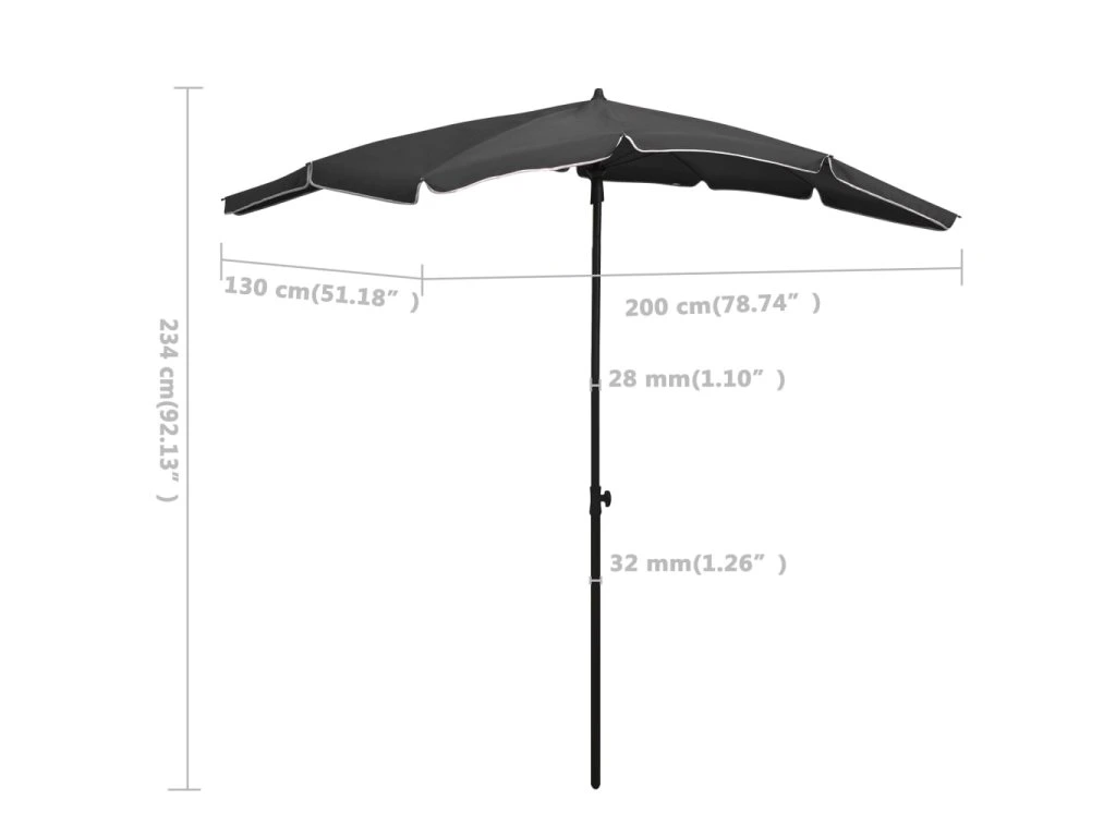 Zahradní slunečník s tyčí 200 x 130 cm antracitový 315553