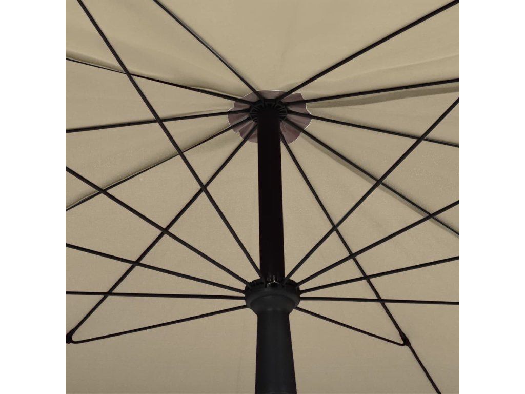 Stříška slunečníku je vyrobená z polyesteru, který nebledne a nepropouští škodlivé UV záření, takže vám poskytne optimální ochranu před sluncem. Navíc se snadno se čistí. Pevná ocelová tyč s 10 odolnými žebry přispívá k výtečné stabilitě produktu a prodlužuje jeho životnost. Exkluzivní design zahradního slunečníku vám umožní sklopit jeho stříšku a chránit se před sluncem po celý den. Slunečník je vybavený klikovým mechanismem, jehož prostřednictvím ho lze snadno otvírat i zavírat.