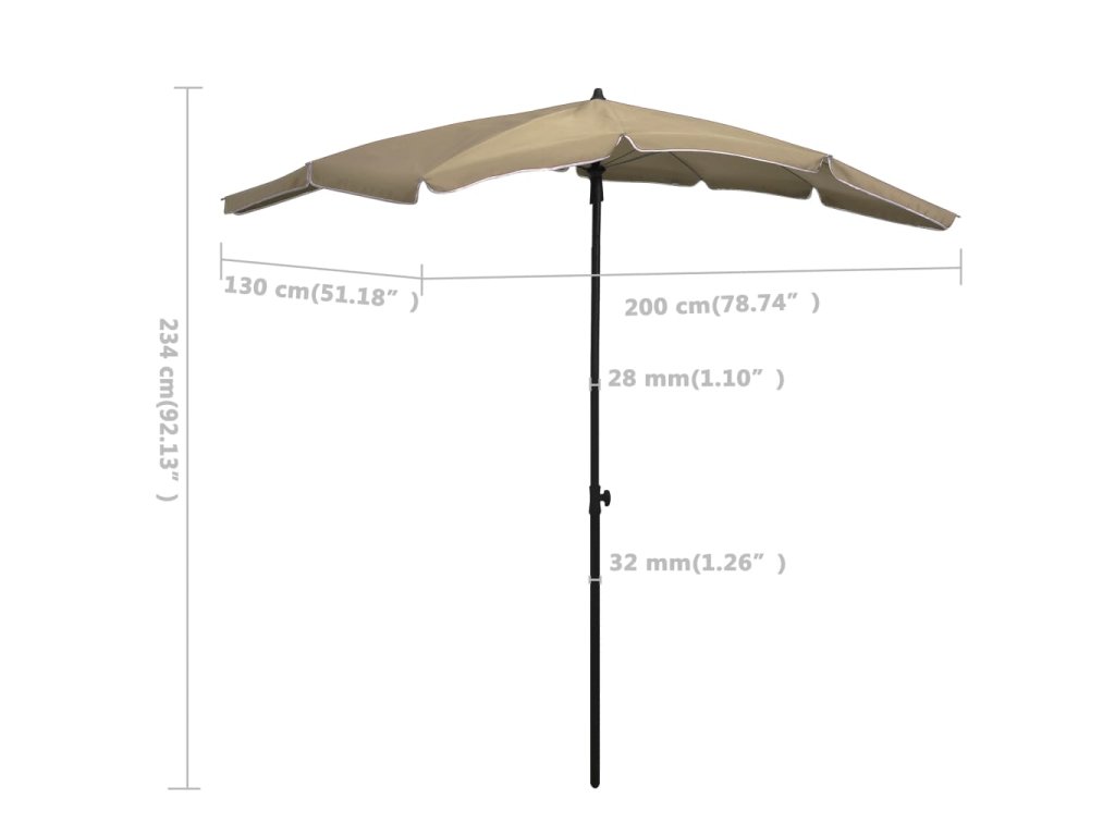 Zahradní slunečník s tyčí 200 x 130 cm taupe 315554
