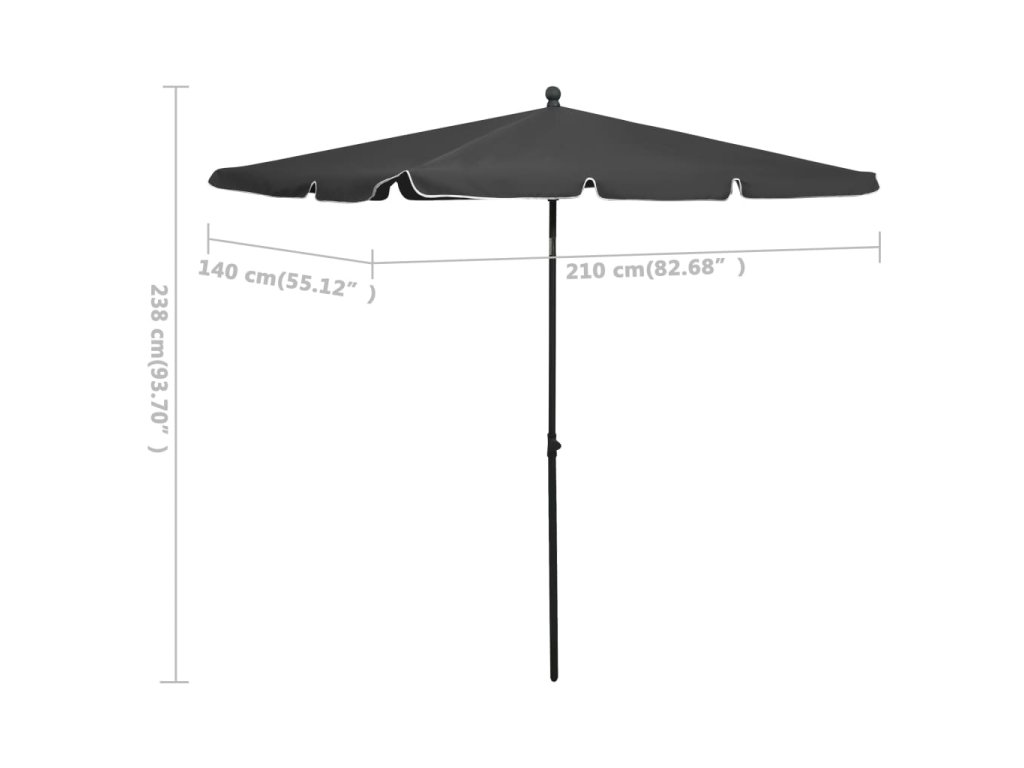 Zahradní slunečník s tyčí 240 x 140 cm antracitový 315545