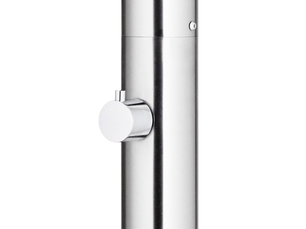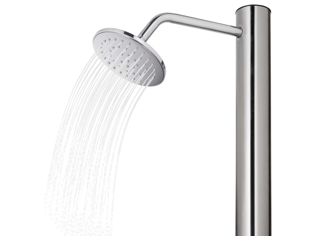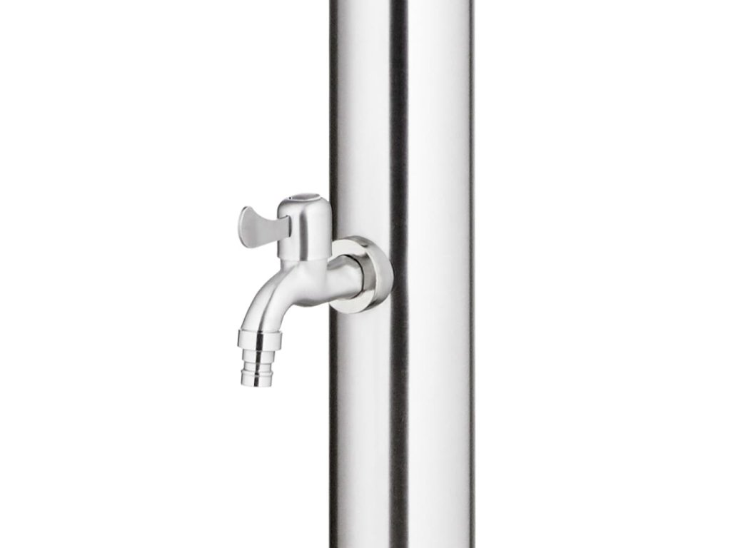Venkovní sprcha je vyrobená z nerezové oceli, takže je odolná vůči povětrnostním vlivům. Sprchový systém s hlavovou sprchou a kohoutkem na mytí nohou vyhoví všem vašim potřebám při zahradničení, zalévání a rychlém sprchování.