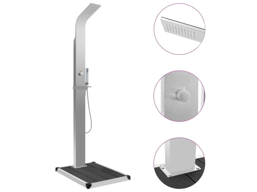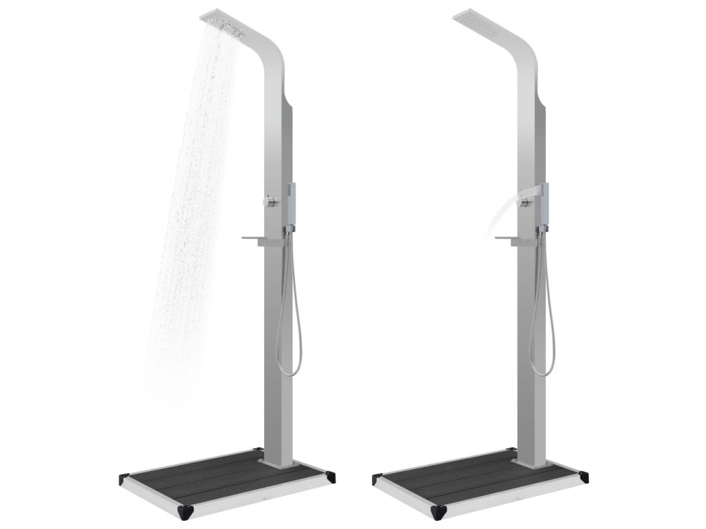 Náš multifunkční sprchový panel má stylový design. V kombinaci s elegantní sprchovou vaničkou bude skvělým doplňkem k vašemu bazénu či do jiných venkovních prostor.