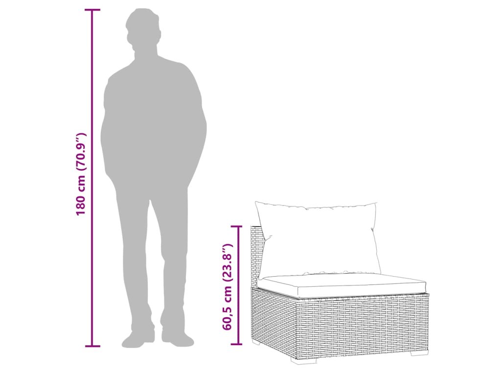 - Rozměry středové pohovky: 70 x 70 x 60,5 cm (D x Š x V)