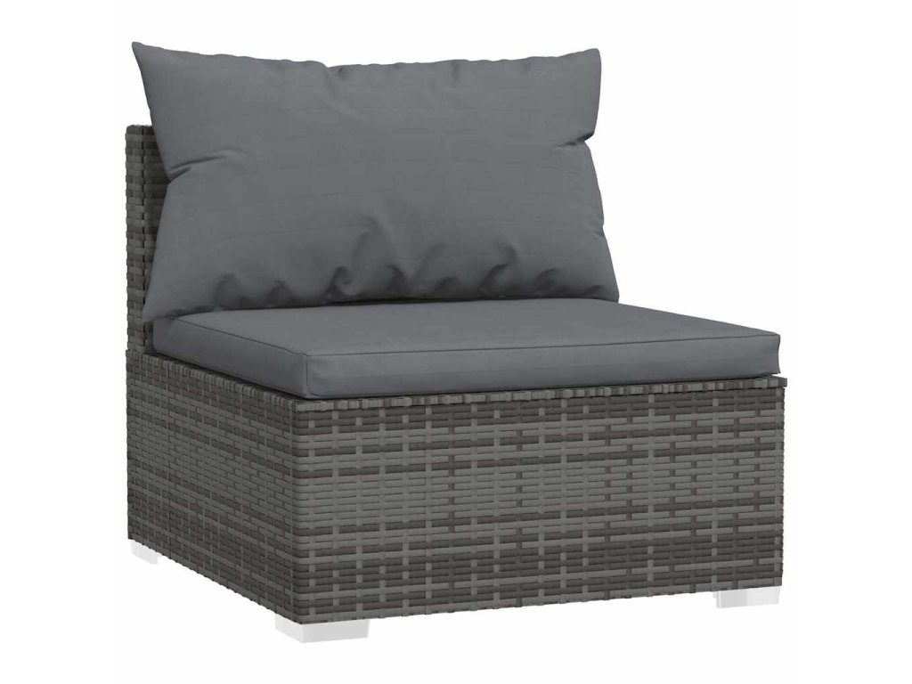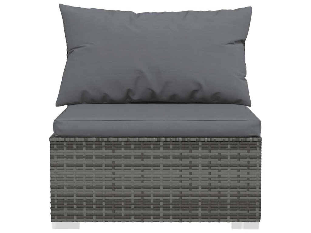 Zahradní středová pohovka s poduškami šedá polyratan 317515