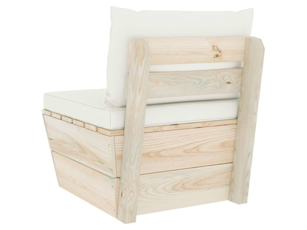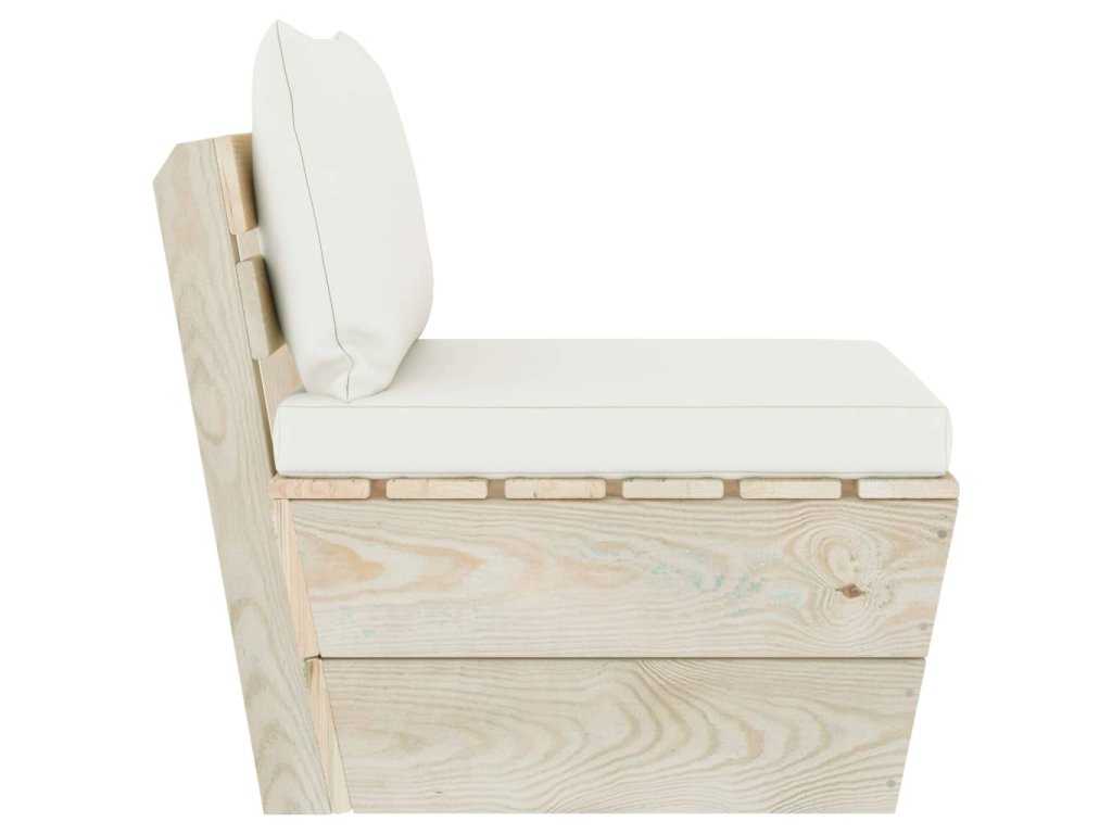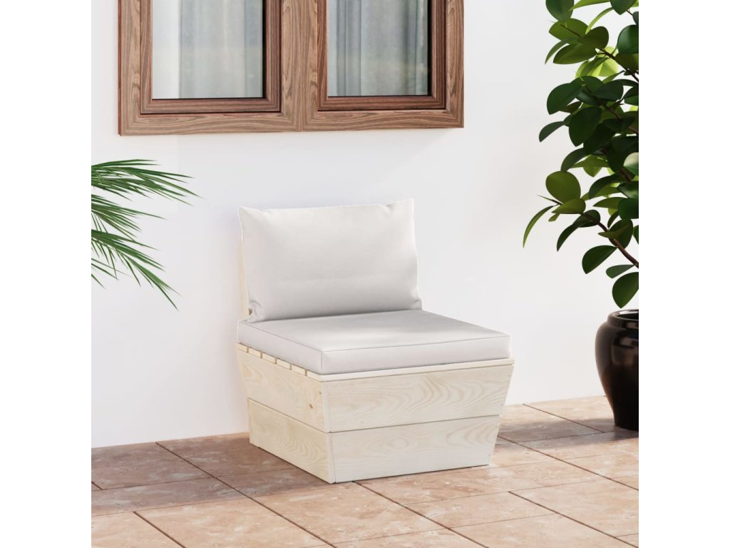 Zahradní sedačka je vyrobená z impregnovaného smrkového dřeva, takže je velice odolná a stabilní. Má pevnou konstrukci a nevyžaduje téměř žádnou údržbu. Podušky na palety jsou čalouněné 100% polyesterem a mají husté polstrování, takže je nesmírně měkká a zajistí vám maximální pohodlí. Středová pohovka vám přijde skvěle vhod, pokud se chcete s rodinou podívat na film, zahrát si video hry nebo si vychutnat pěkné počasí na dvorku. Zahradní posezení má modulární design, což znamená, že je zcela flexibilní a lze ho snadno přesouvat a přizpůsobovat různým prostředím. Můžete ho také zkombinovat s dalšími modulovými díly a vytvořit si originální zahradní sedací soupravu přesně podle vašich představ!
