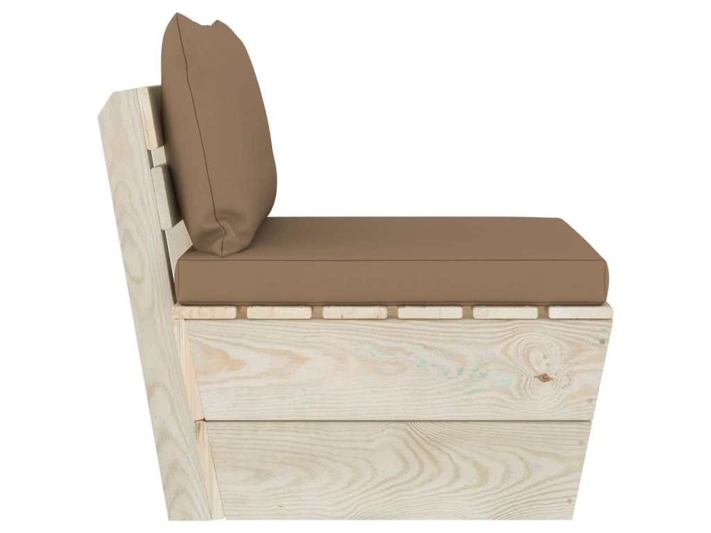 Zahradní sedačka je vyrobená z impregnovaného smrkového dřeva, takže je velice odolná a stabilní. Má pevnou konstrukci a nevyžaduje téměř žádnou údržbu. Podušky na palety jsou čalouněné 100% polyesterem a mají husté polstrování, takže je nesmírně měkká a zajistí vám maximální pohodlí. Středová pohovka vám přijde skvěle vhod, pokud se chcete s rodinou podívat na film, zahrát si video hry nebo si vychutnat pěkné počasí na dvorku. Zahradní posezení má modulární design, což znamená, že je zcela flexibilní a lze ho snadno přesouvat a přizpůsobovat různým prostředím. Můžete ho také zkombinovat s dalšími modulovými díly a vytvořit si originální zahradní sedací soupravu přesně podle vašich představ!
