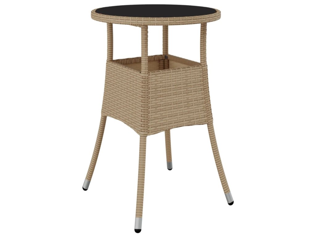Zahradní stůl Ø 60 x 75 cm tvrzené sklo a polyratan béžový 310601