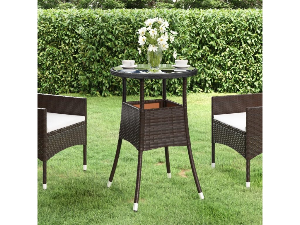 Zahradní stůl Ø 60 x 75 cm tvrzené sklo a polyratan hnědý 310599