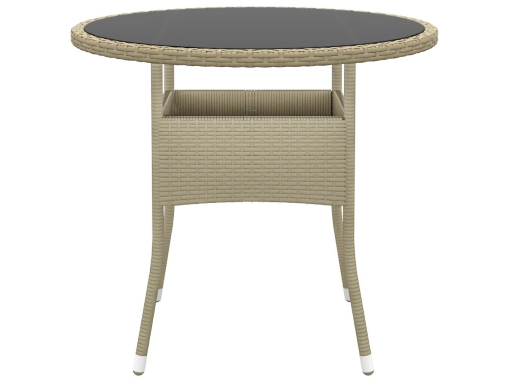 Zahradní stůl Ø 80 x 75 cm tvrzené sklo a polyratan béžový 310607