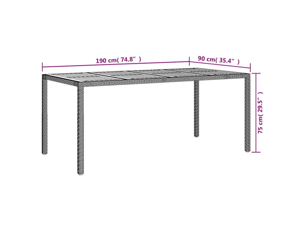 Zahradní stůl 190 x 90 x 75 cm polyratan a akáciové dřevo černý 316722
