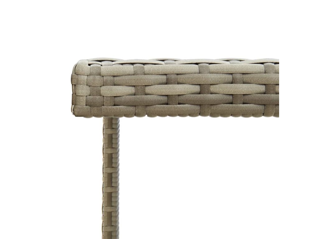 PE ratan, ze kterého je tento venkovní stůl vyrobený, skvěle odolává povětrnostním vlivům, snadno se čistí a vyznačuje se dlouhou životností. Ocelový rám s práškovým nástřikem a stolní deska z tvrzeného skla jsou pevné a stabilní. Deska je ideální pro odkládání nebo vystavení různých doplňků či drobností. Tento venkovní jídelní stůl má navíc lehkou konstrukci a jednoduše se s ním manipuluje.