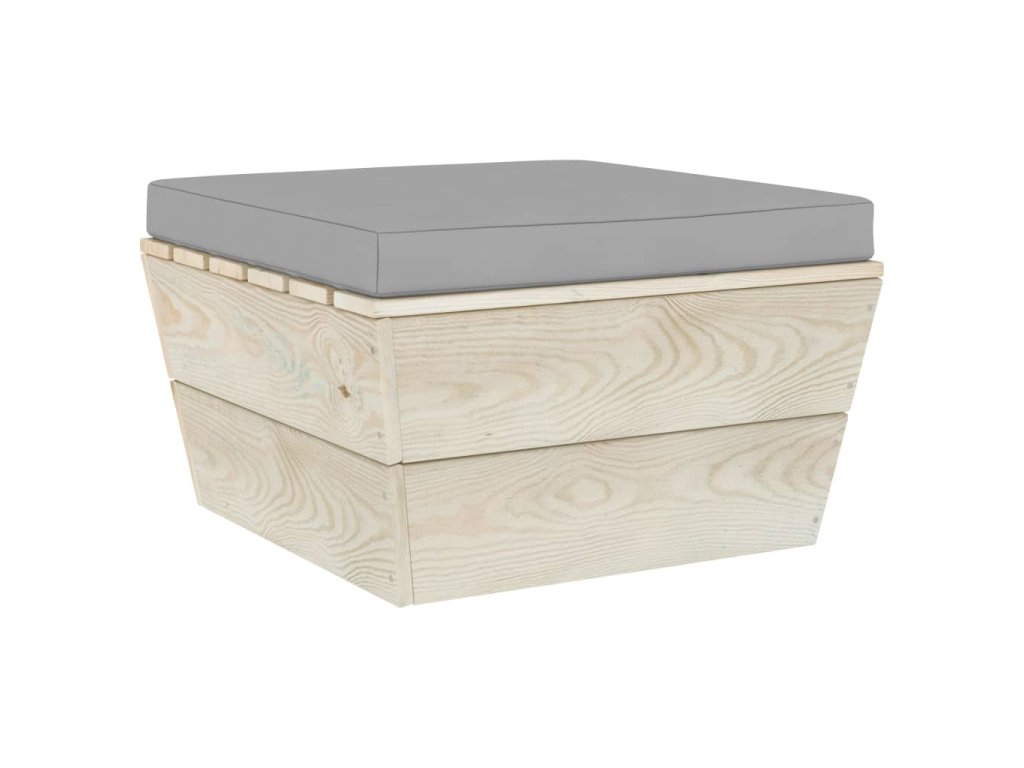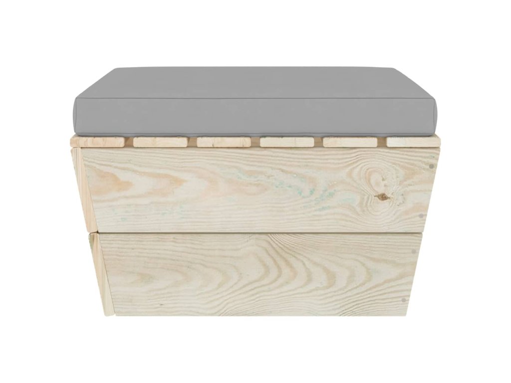Podnožka je vyrobená z impregnovaného smrkového dřeva, takže je velice odolná a stabilní. Má pevnou konstrukci a nevyžaduje téměř žádnou údržbu. Poduška na palety je čalouněná 100% polyesterem a má husté polstrování, takže je nesmírně měkká a zajistí vám maximální pohodlí. Taburet vám přijde skvěle vhod, pokud se chcete s rodinou podívat na film, zahrát si video hry nebo si vychutnat pěkné počasí na dvorku. Nábytek má modulární design, což znamená, že je zcela flexibilní a lze ho snadno přesouvat a přizpůsobovat různým prostředím. Můžete ho také zkombinovat s dalšími modulovými díly a vytvořit si originální zahradní sedací soupravu přesně podle vašich představ!