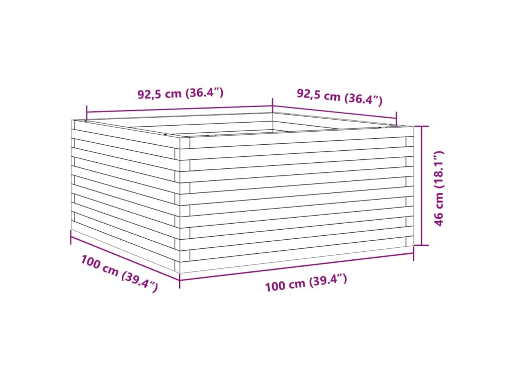 Zahradní truhlík bílý 100 x 100 x 46 cm masivní borové dřevo 3282430