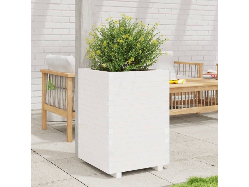 Zahradní truhlík bílý 50 x 50 x 72,5 cm masivní borovice 3282575