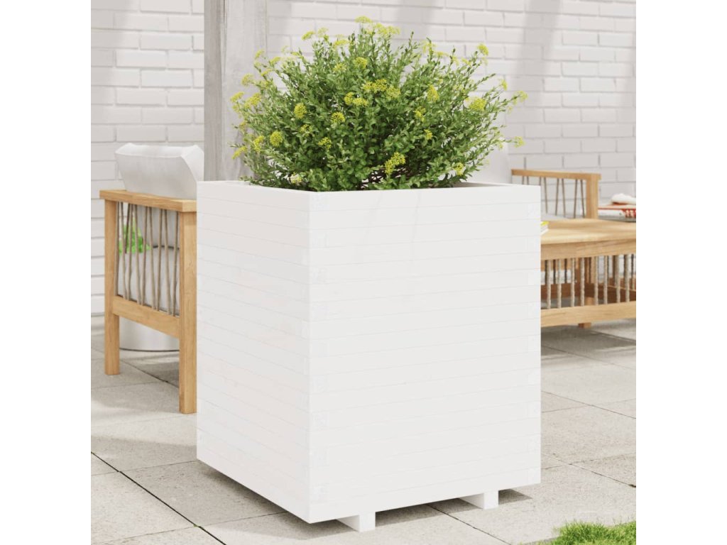 Zahradní truhlík bílý 60 x 60 x 72,5 cm masivní borovice 3282580