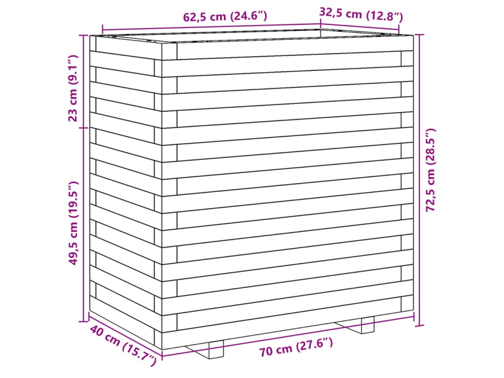 Zahradní truhlík bílý 70 x 40 x 72,5 cm masivní borové dřevo 3282590