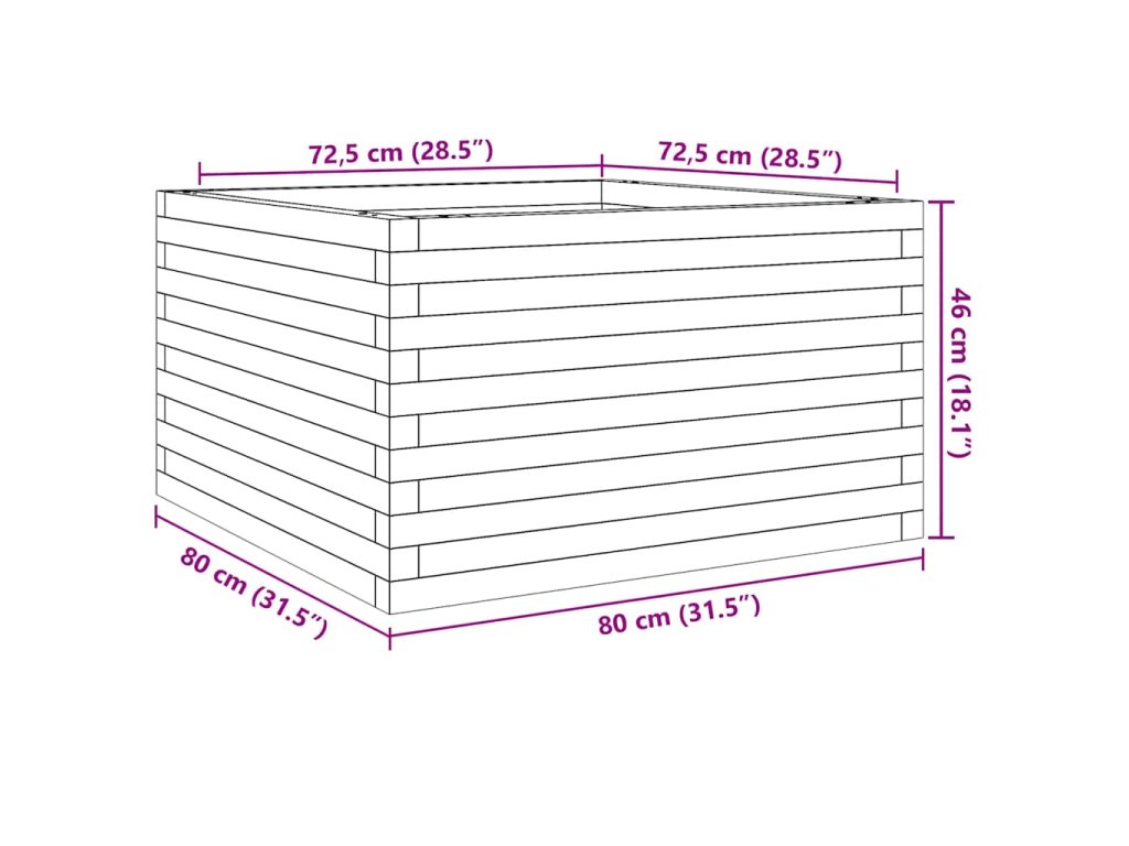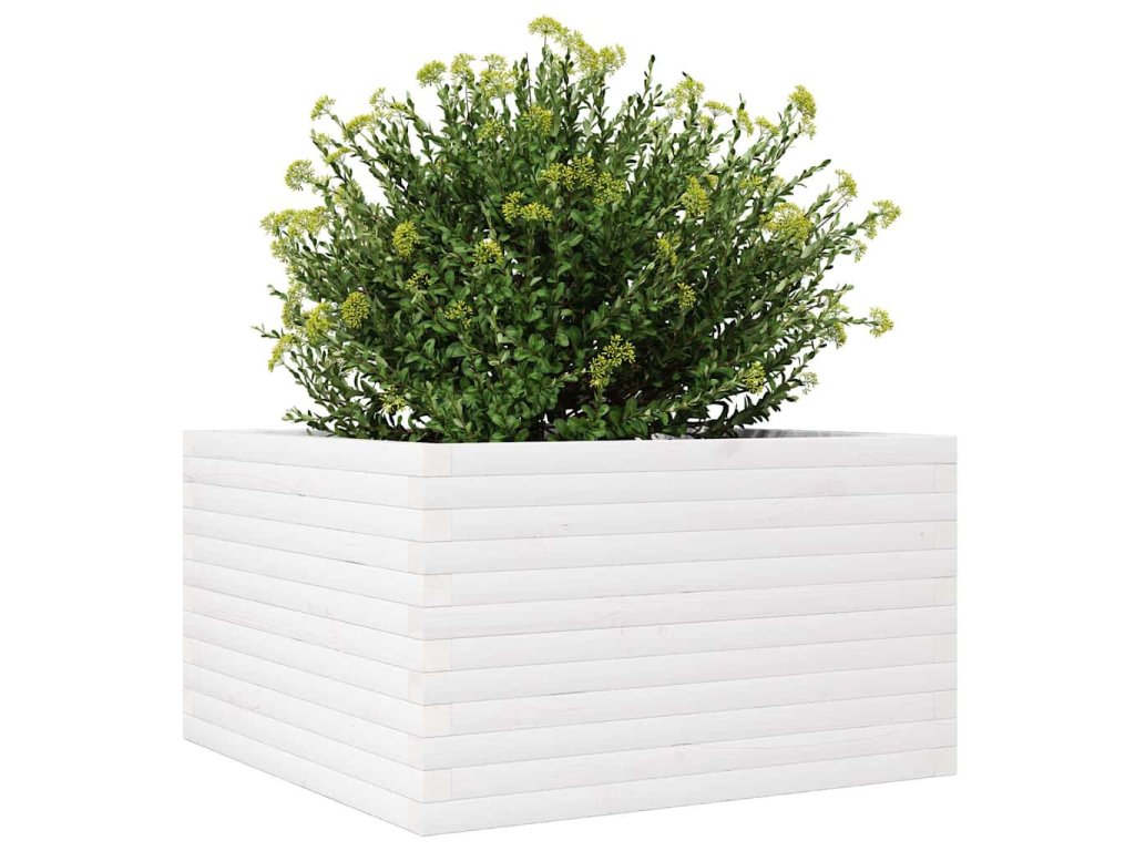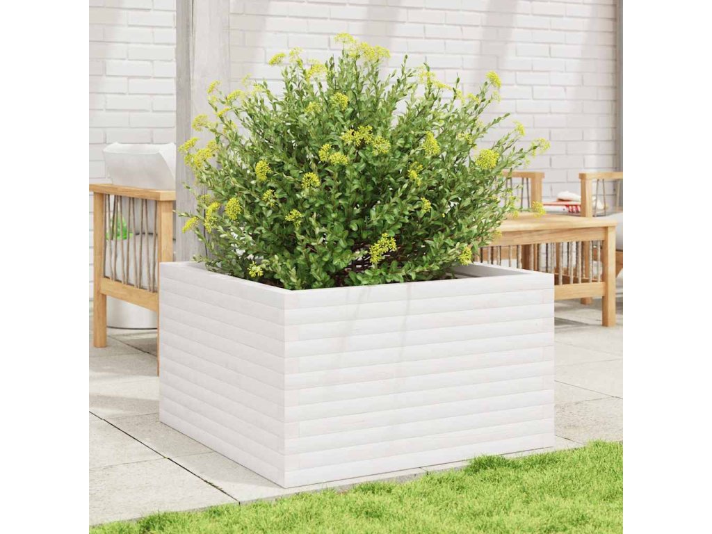 Zahradní truhlík bílý 80 x 80 x 46 cm masivní borové dřevo 3282420