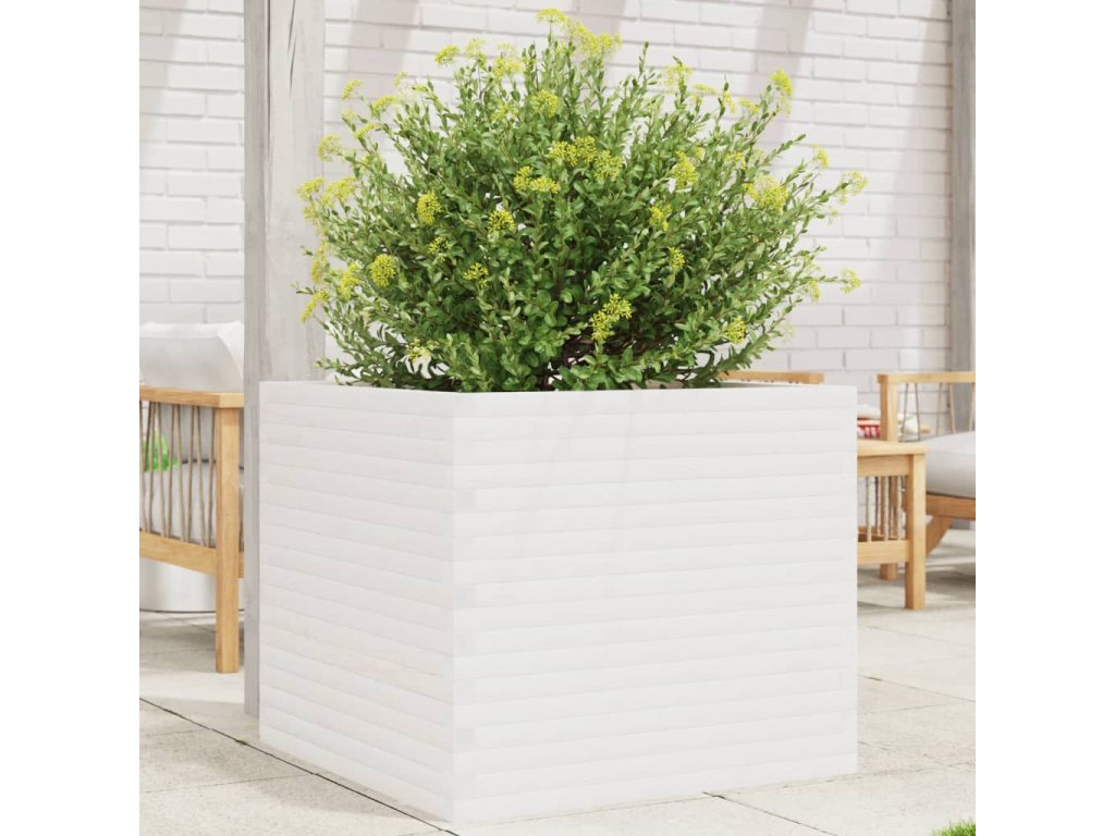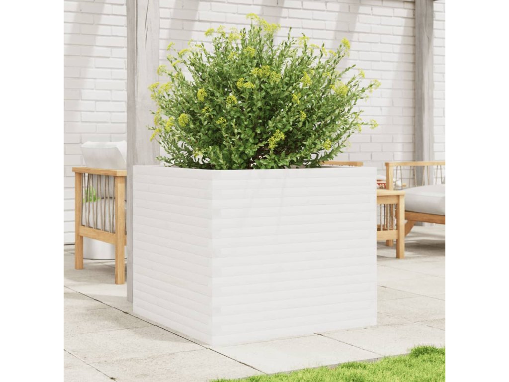Zahradní truhlík bílý 80 x 80 x 68,5 cm masivní borovice 3282480