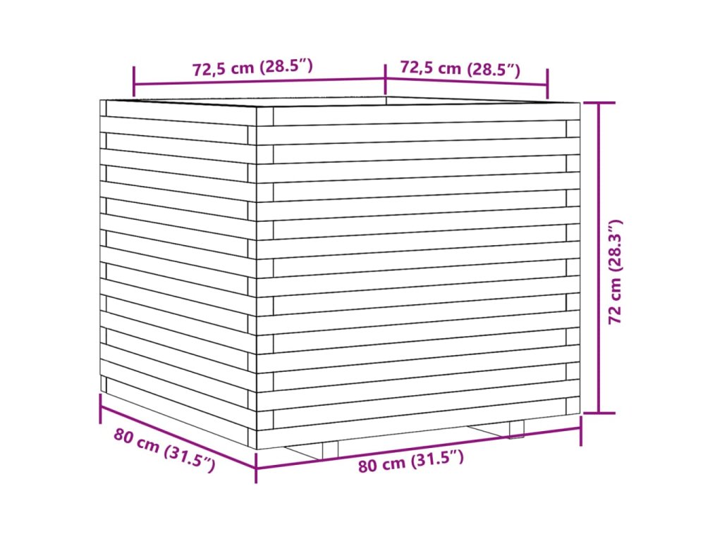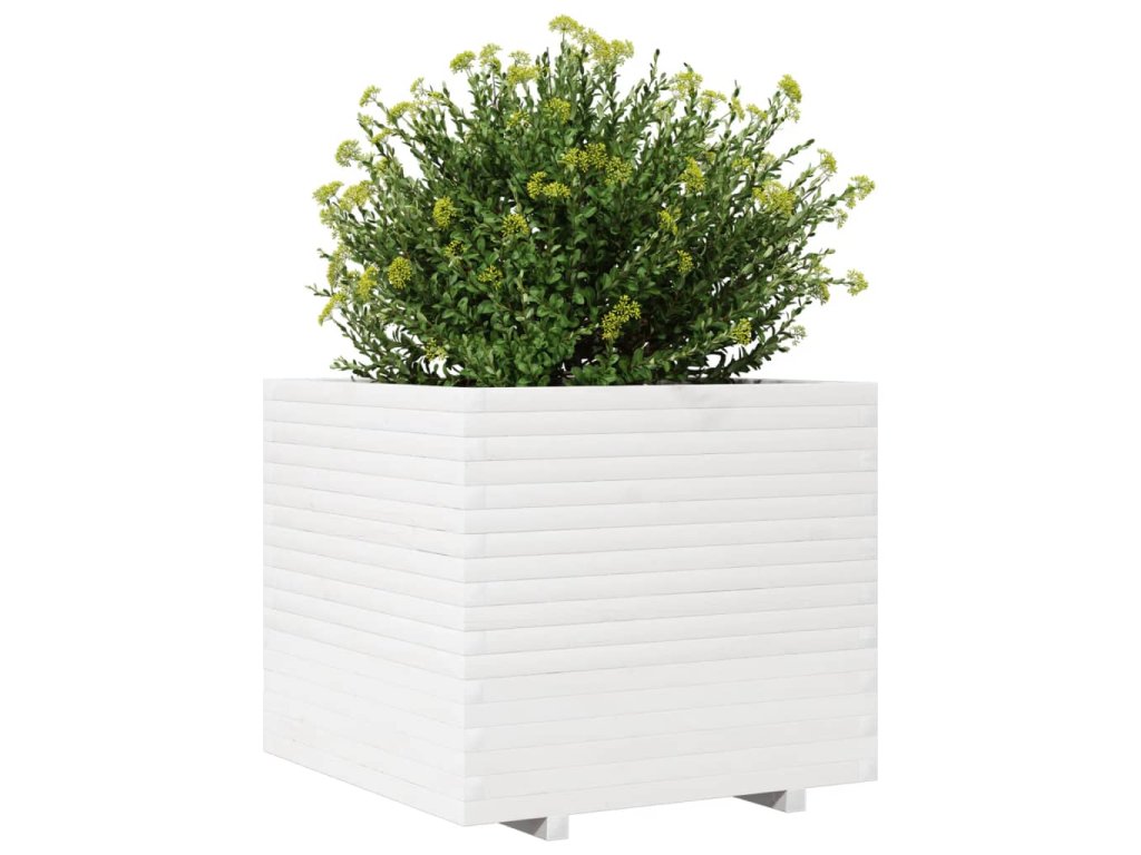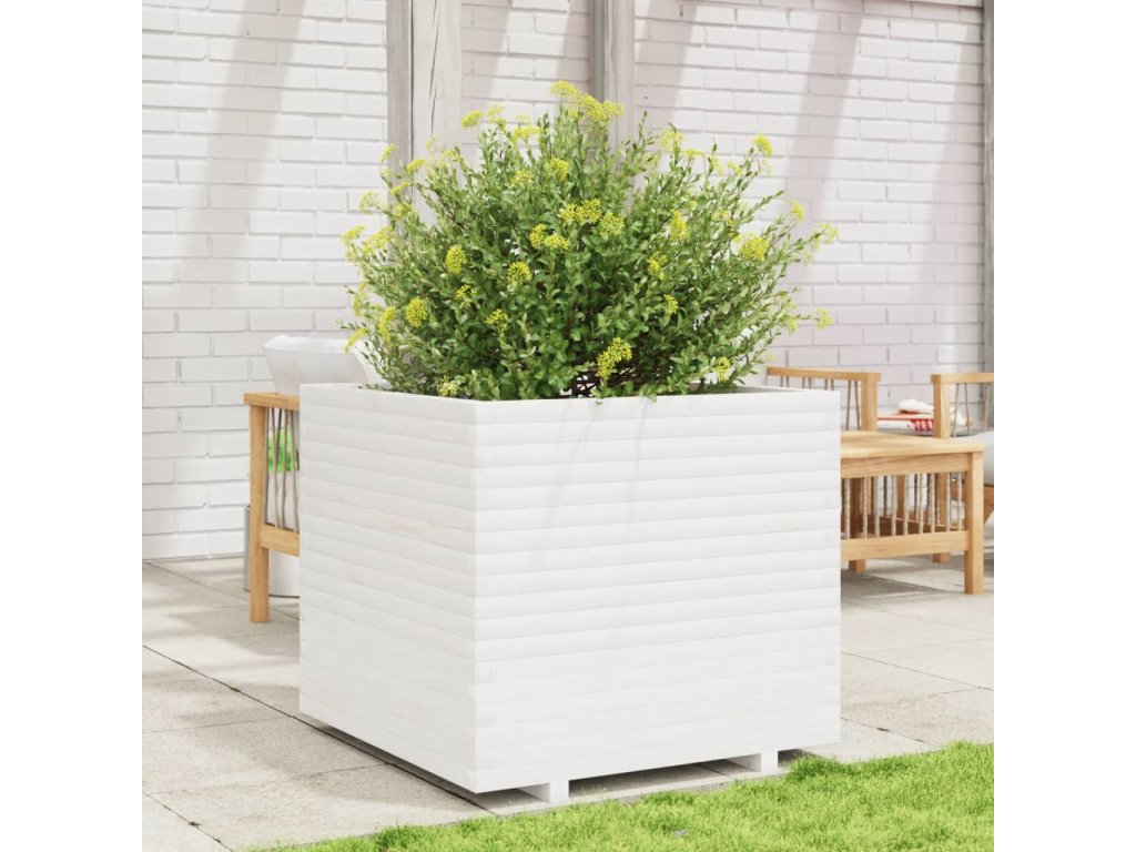 Zahradní truhlík bílý 80 x 80 x 72 cm masivní borové dřevo 3282625