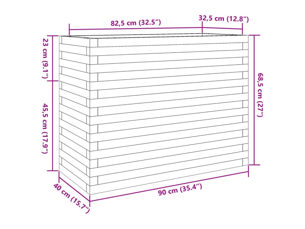 Zahradní truhlík bílý 90 x 40 x 68,5 cm masivní borové dřevo 3282490