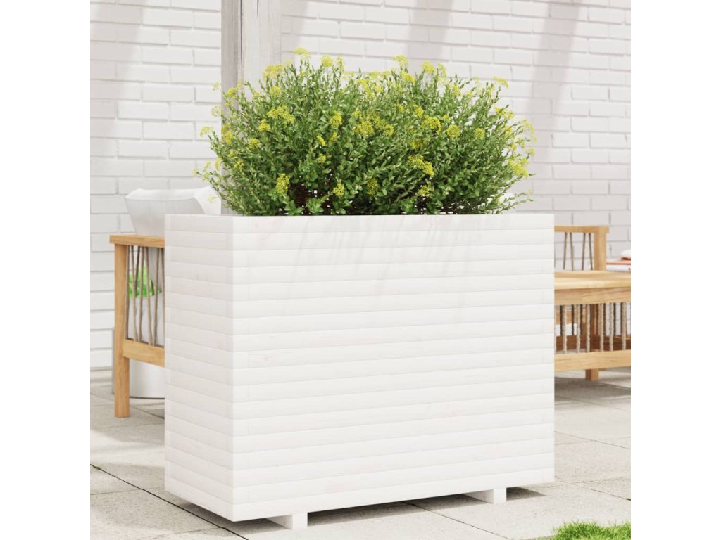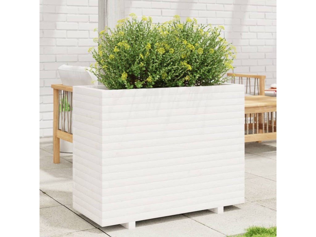Zahradní truhlík bílý 90 x 40 x 72,5 cm masivní borové dřevo 3282595
