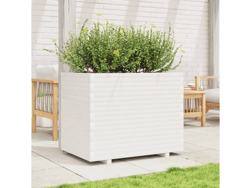 Zahradní truhlík bílý 90 x 60 x 72,5 cm masivní borové dřevo 3282605