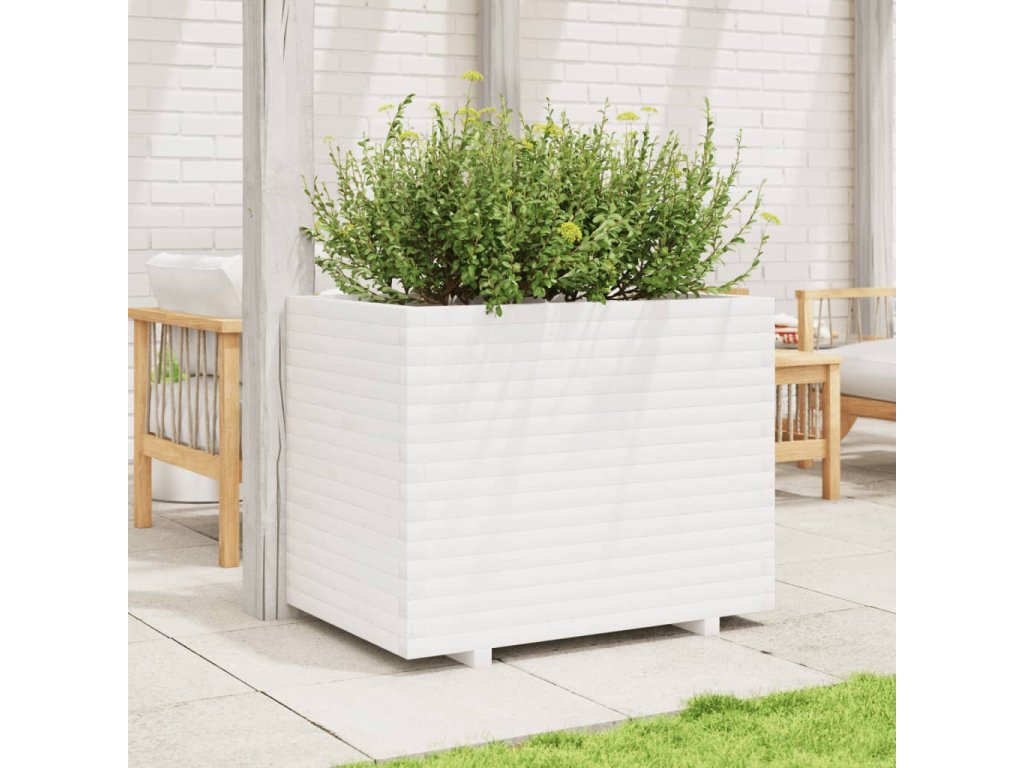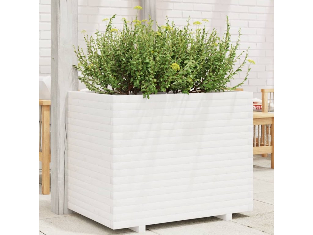 Zahradní truhlík bílý 90 x 60 x 72 cm masivní borové dřevo 3282645
