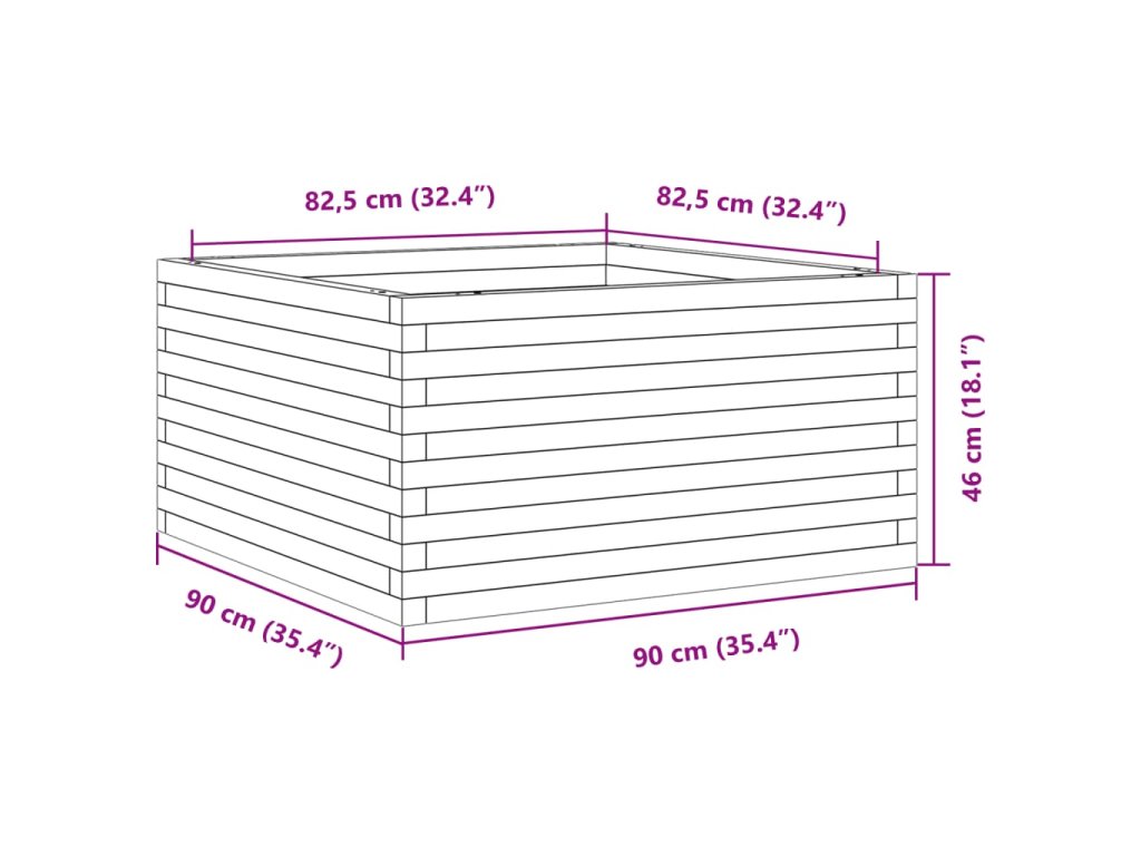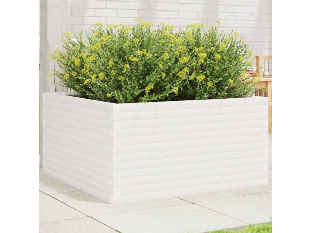 Zahradní truhlík bílý 90 x 90 x 46 cm masivní borovice 3282425