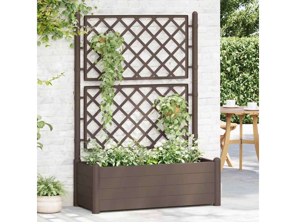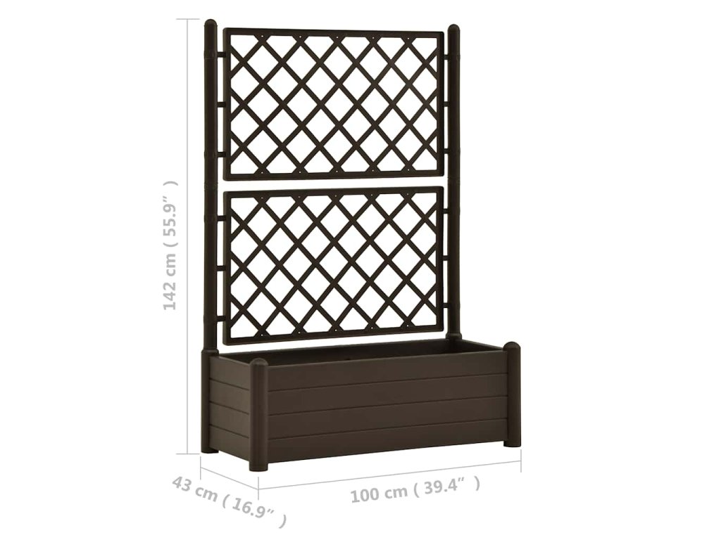 Zahradní truhlík s treláží 100 x 43 x 142 cm PP mokka 313984