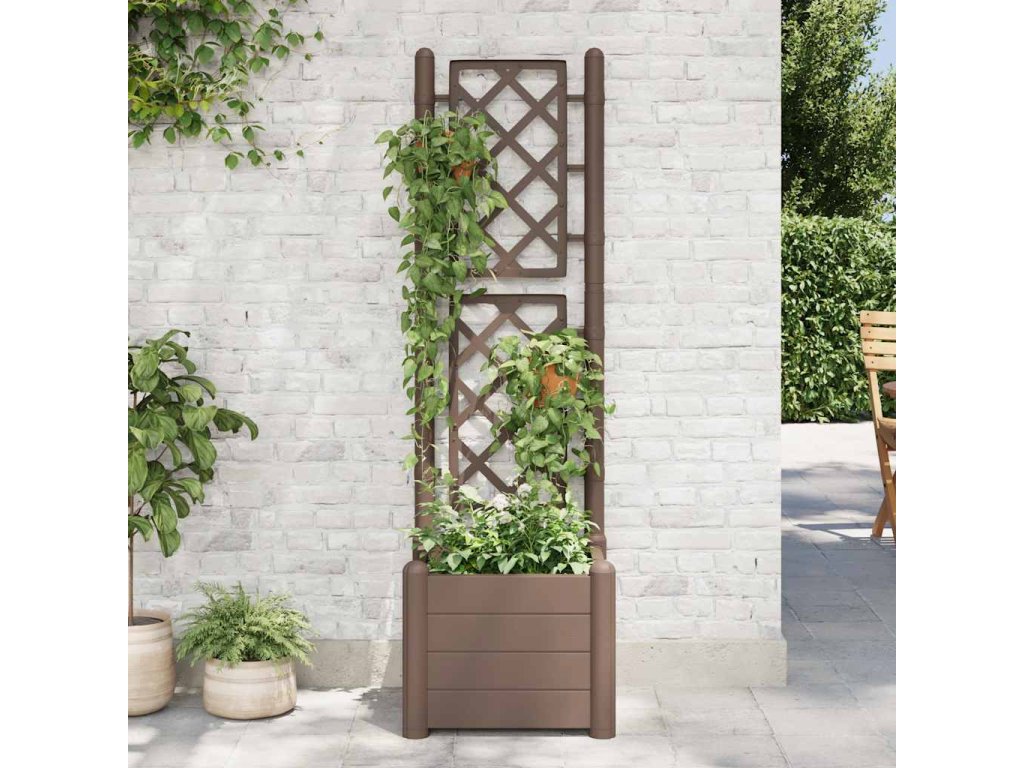 Zahradní truhlík s treláží 43 x 43 x 142 cm PP moka 313980