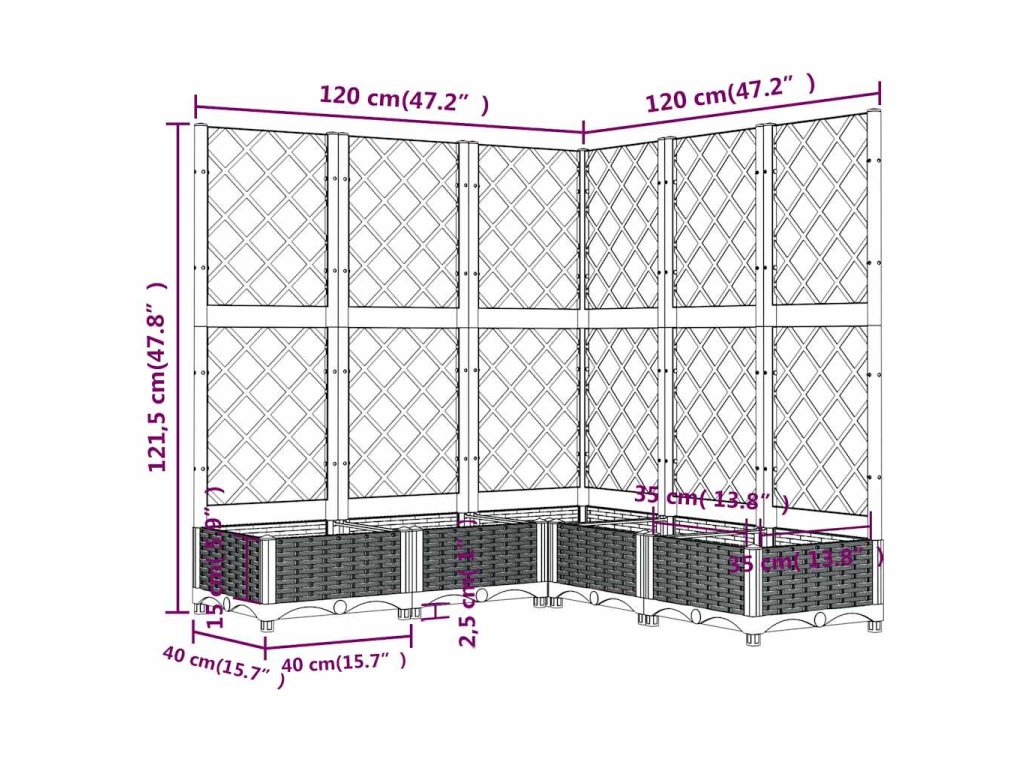 Zahradní truhlík s treláží modrá šedá 120 x 120 x 121,5 cm PP 318256