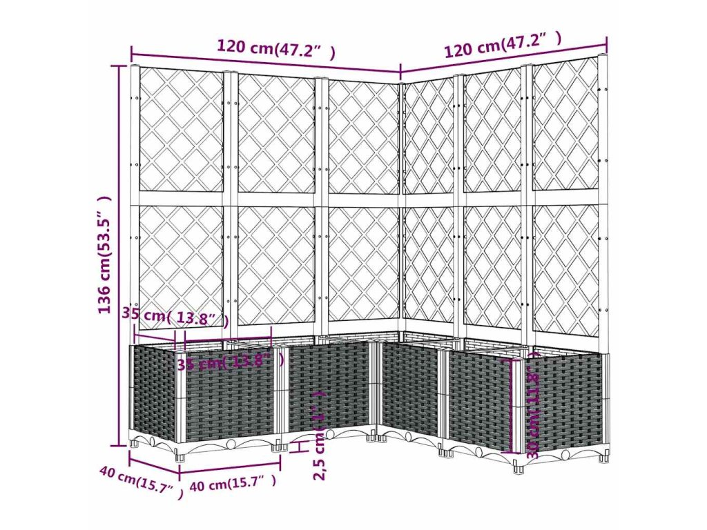 - Všestrannost: Integrovaná mříž nabízí skvělou oporu pro pěstování popínavých rostlin, jako jsou rajčata, hrášek a růže.