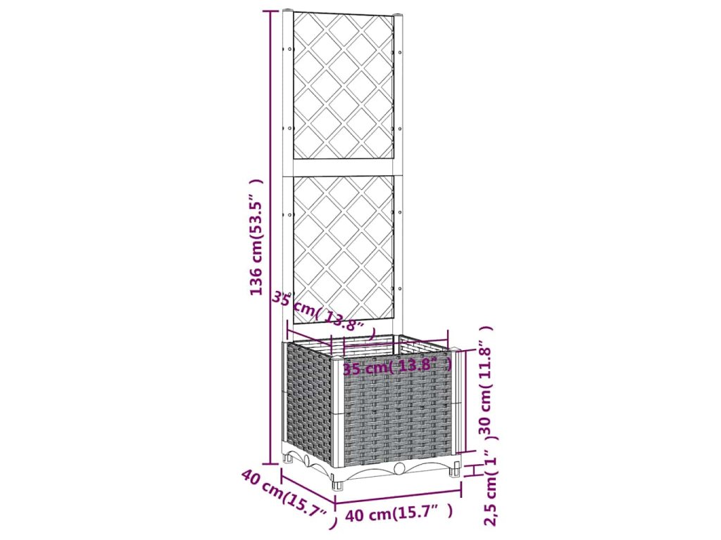 - Všestrannost: Integrovaná mříž nabízí skvělou oporu pro pěstování popínavých rostlin, jako jsou rajčata, hrášek a růže.