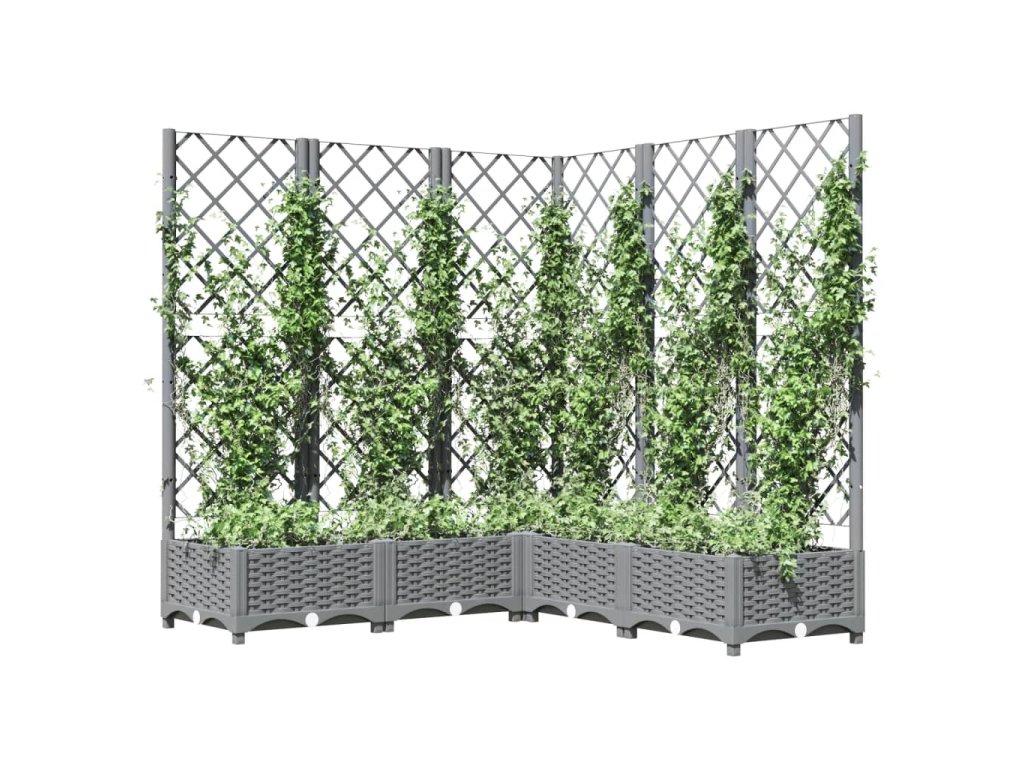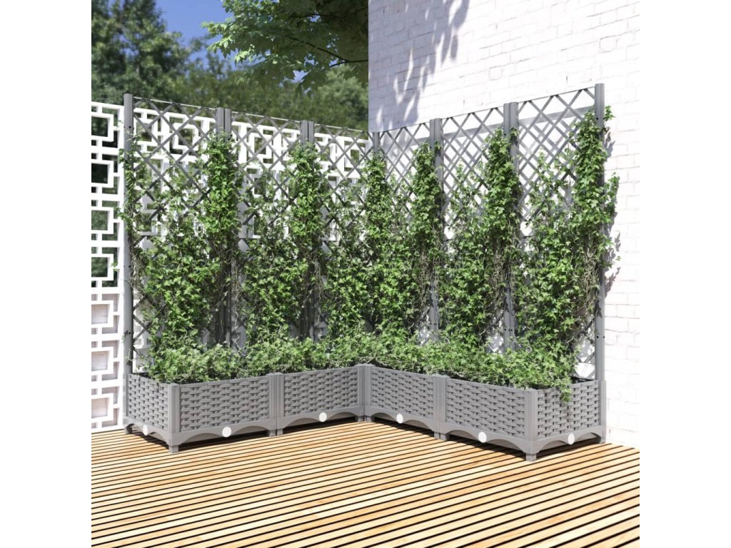 Zahradní truhlík s treláží světle šedý 120 x 120 x 121,5 cm PP 153277