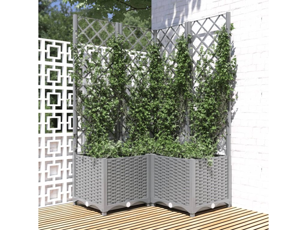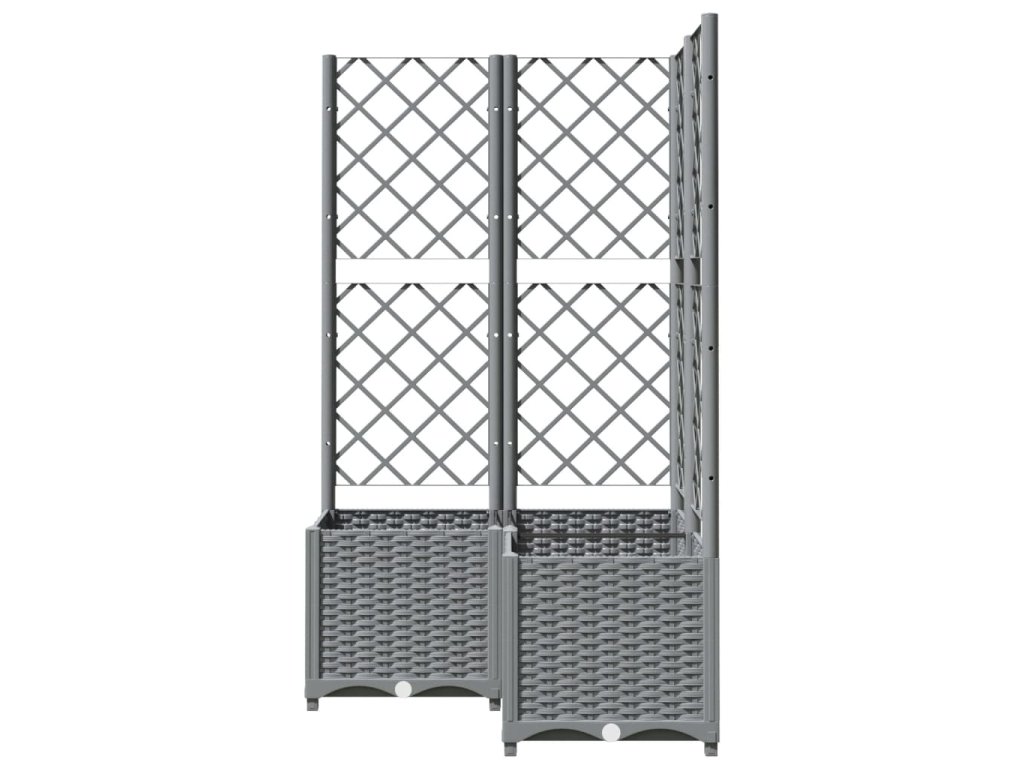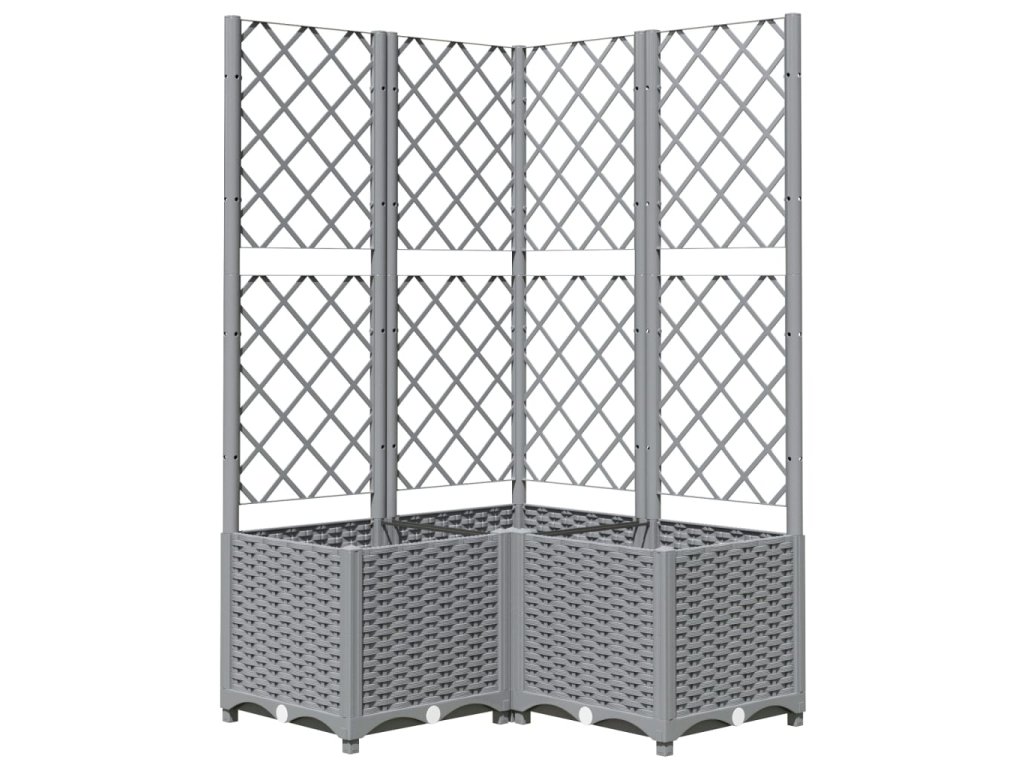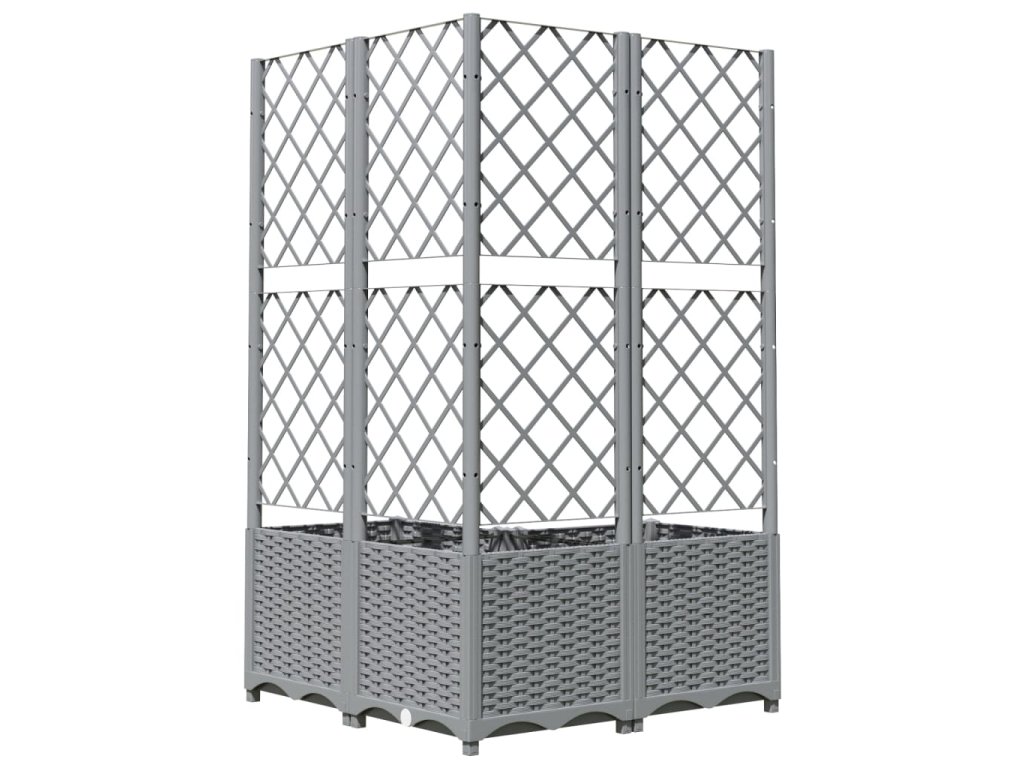 Zahradní truhlík s treláží světle šedý 80 x 80 x 136 cm PP 153276