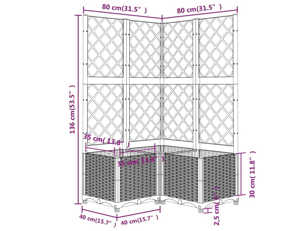 - Užitková treláž: Integrovaná treláž nabízí skvělou oporu pro pěstování popínavých rostlin, jako jsou rajčata, hrášek a růže.