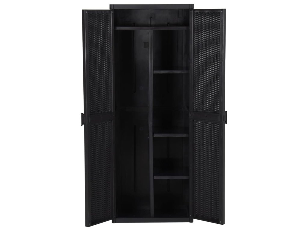 Zahradní úložná skříň černá 65 x 45 x 172 cm PP ratan 151238