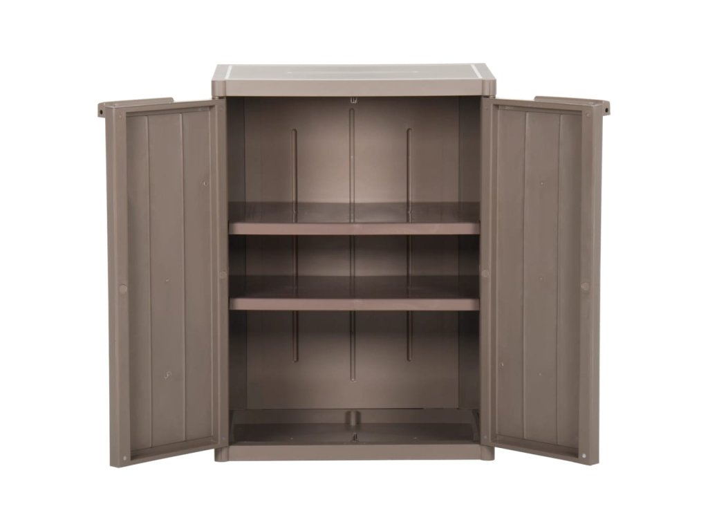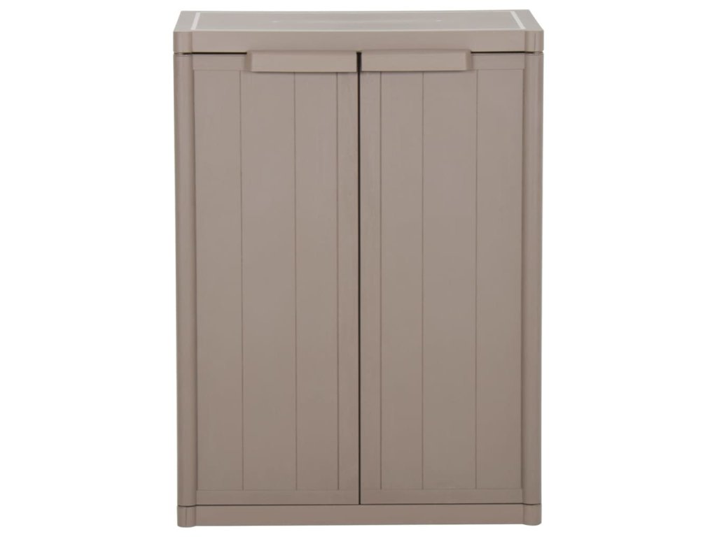 Tento úložný box je vyrobený ze 100% PP (polypropylenu), takže je odolný a snadno se čistí. Jeho 2 police poskytují dostatek prostoru pro přehledné uspořádání a ukládání vašich nezbytností, jako jsou utěrky, prací prostředky, kartáče a další. Všestranná skříň splní například na terase všechny vaše požadavky.