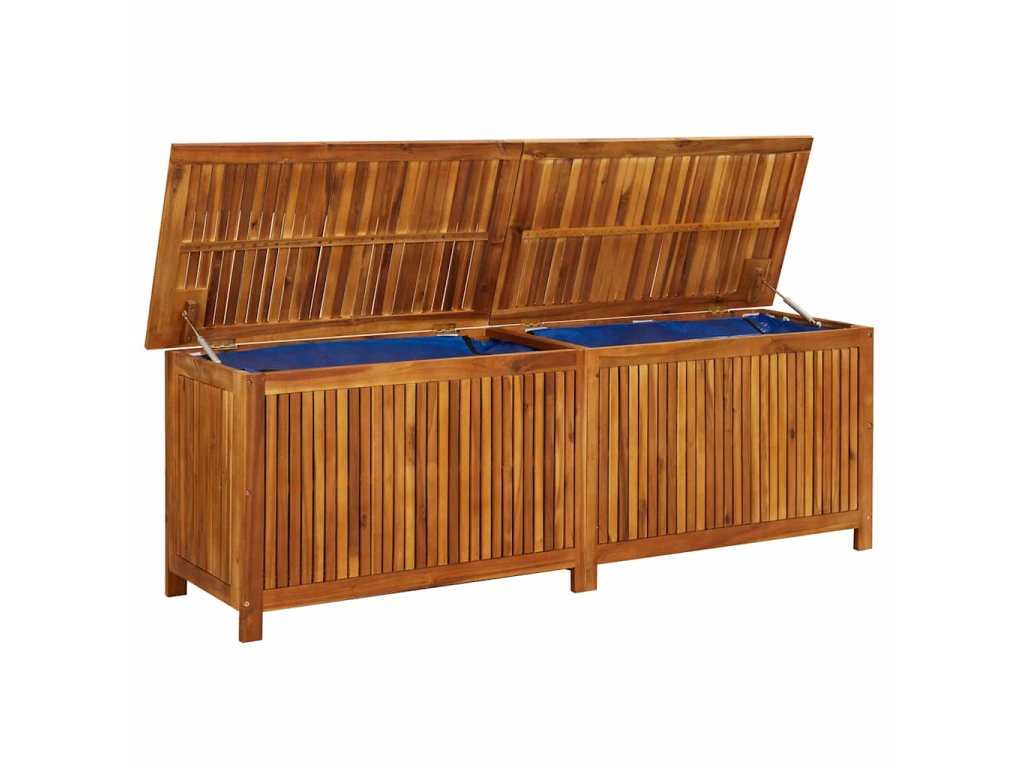 Box na podušky je vyrobený z masivního akáciového dřeva s olejovaným povrchem. Uvnitř má voděodolnou výstelku se zipem, takže je velmi odolný, má dlouhou životnost a hodí se pro venkovní použití. Zároveň představuje dokonalé úložné řešení na podušky, polštáře, deky či jiné zahradní nebo domácí potřeby, které v něm budou přehledně uložené a v dosahu ruky.