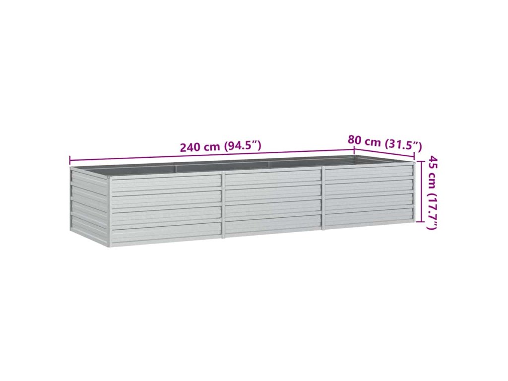 Zahradní vyvýšený záhon 240x80x45 cm pozinkovaná ocel stříbrný 316888