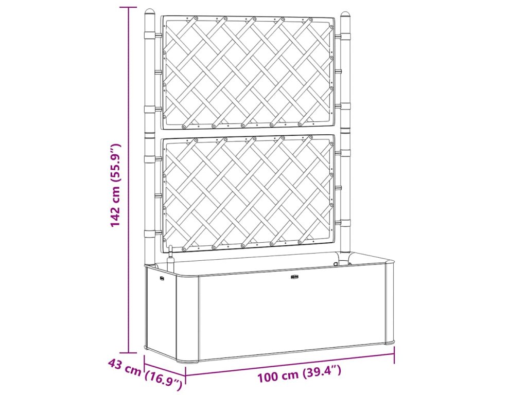 Vytvořte svým květinám krásné pozadí s tímto elegantním, funkčním a jedinečným samozavlažovacím vyvýšeným záhonem! Do tohoto truhlíku s treláží se vejde velké množství zelených rostlin a květin.