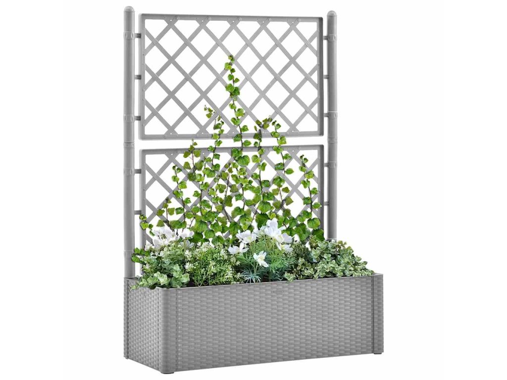 Zahradní vyvýšený záhon s treláží a samozavlažováním šedý 317578