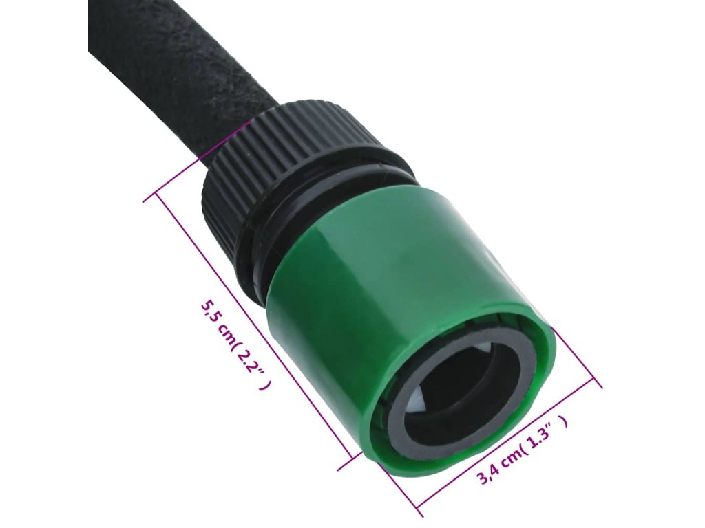 - Odolný materiál: Tato zavlažovací hadice je vyrobena z pryže, je lehká, pružná a odolná, a umožňuje tak propustnost vody po celé své délce.