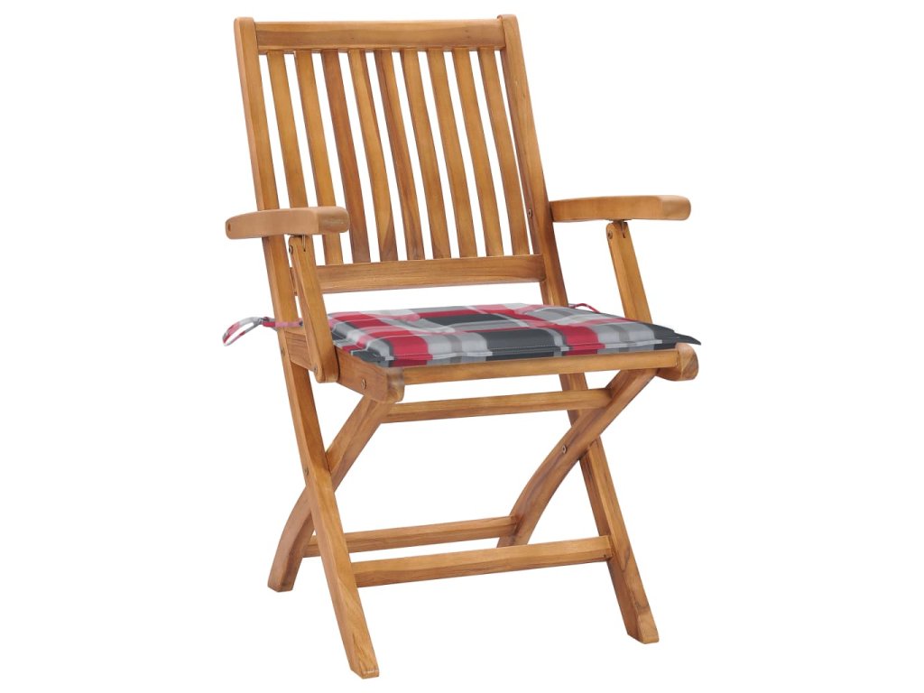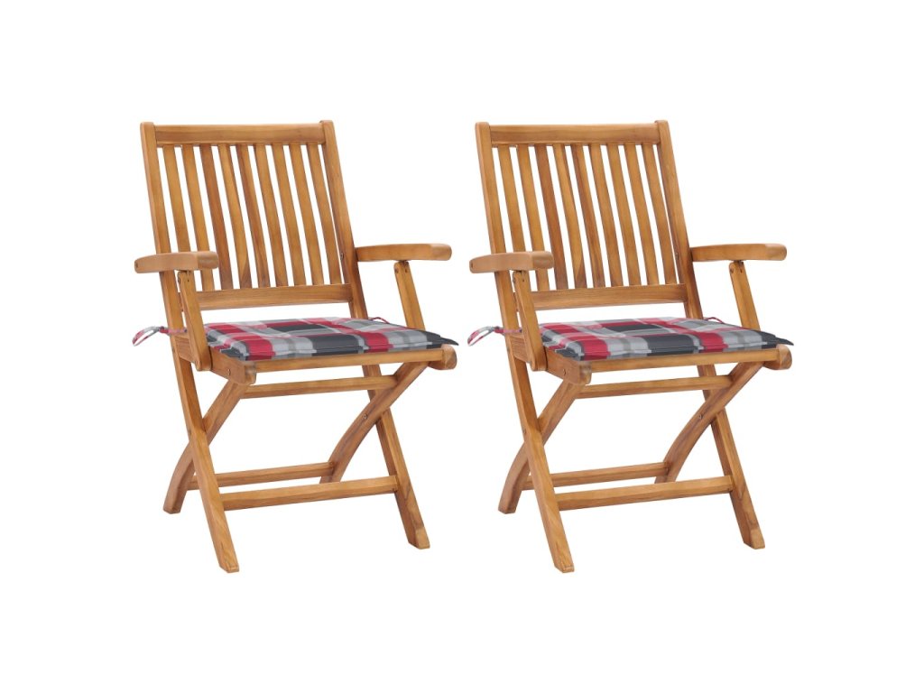 Zahradní židle 2 ks červené kárované podušky masivní teak 3062419