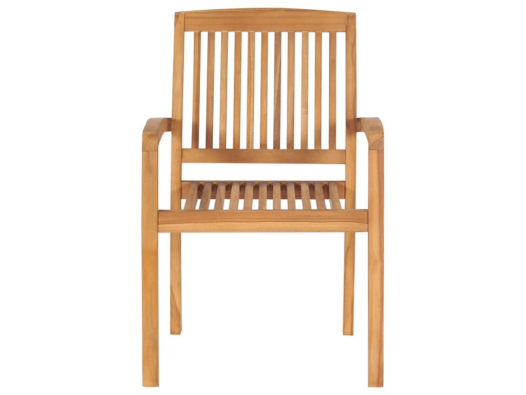 Sada zahradních židlí má laťková opěradla a mírně zaoblené područky, aby se vám na nich lépe sedělo. Jednotlivé židle se na sebe dají stohovat, čímž vám pomohou ušetřit místo, když je zrovna nepoužíváte. Přibalené podušky jsou nejen praktické, ale plní také dekorativní funkci.