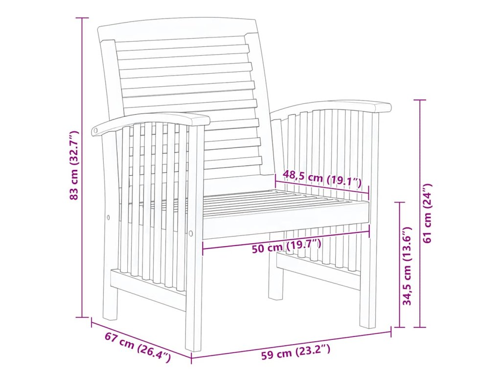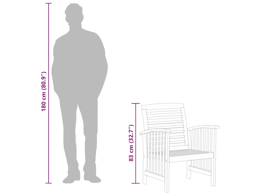 Zahradní křeslo je vyrobené z masivního akáciového dřeva s olejovým povrchem, je stabilní a má dlouhou životnost. Řemeslné zpracování a krásná kresba dřeva dává každému kusu nábytku jeho charakteristický a neopakovatelný vzhled.