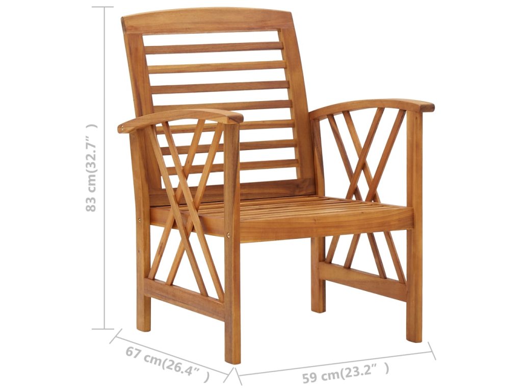 Zahradní křeslo je vyrobené z masivního akáciového dřeva s olejovým povrchem, je stabilní a má dlouhou životnost. Řemeslné zpracování a krásná kresba dřeva dává každému kusu nábytku jeho charakteristický a neopakovatelný vzhled.
