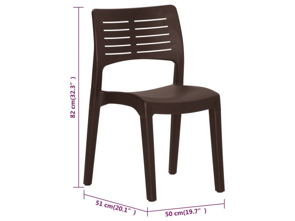 - Odolný materiál: Tyto venkovní židle jsou vyrobeny z polypropylenu, takže se snadno čistí a jsou dostatečně odolné pro venkovní použití.