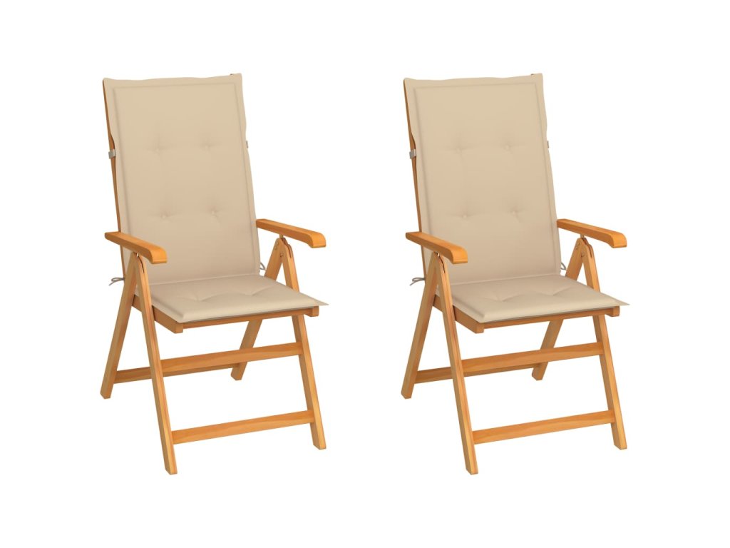 Zahradní židle 2 ks s béžovými poduškami masivní teak 3062379